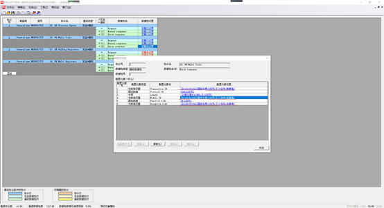 按上图设置,类型(K)选择“通信协议库,“型号”选择“MODBUS/TCP”,“协议名”与“协议号”对应,如协议号1对应功能码为02,用来读取Modbus TCP服务器多路输入,最后点击“确定”进入下图